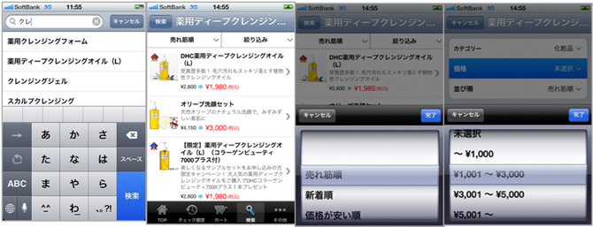 スマートフォンアプリのインターフェイス/通信手法を生かし、商品の検索、ご注文がよりスピーディーに行えるようになりました。