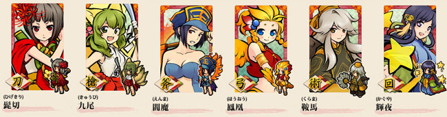 最上級式姫は「髭切」「九尾」「閻魔」「鳳凰」「鞍馬」「輝夜」の中からランダムで1枚選択され、ゲームを開始した時点で配布されます。
