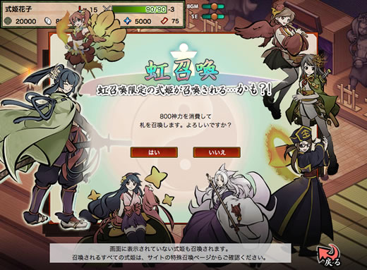 期間中、虹召喚および金召喚での舶来レア種の式姫の出現率が2倍になります。