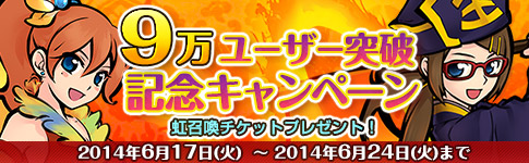 2014年6月17日(火) 13:00 以前にユーザー登録をした全プレイヤーに対して超強力な式姫を召喚することができる「虹召喚チケット」を1枚プレゼントいたします。