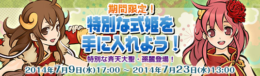 | <キャンペーン期間> | 2014年7月9日(水)のメンテナンス終了より、2014年7月23日(水)のメンテナンス開始まで ※メンテナンス状況などにより、開始日時と終了日時が変更される場合がございます。 |