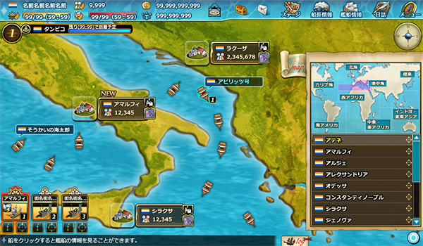 また、交易路によって風向きが変化したり、全プレイヤーの取引量に連動して相場が変動するなど、非常に変化の富んだ貿易ができます。