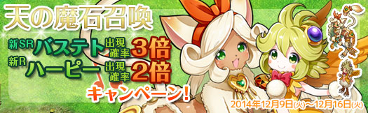 期間中は天の魔石において、新SR魔物「バステト」の出現確率が通常時の3倍になります。