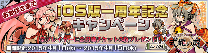 | キャンペーン詳細URL | http://www.shikihime-garden4mobile.com/event/20150401_memorial |