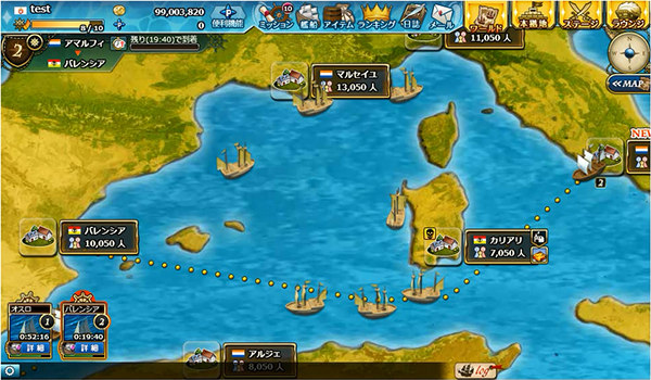 また、交易路によって風向きが変化したり、全プレイヤーの取引量に連動して相場が変動するなど、非常に変化の富んだ貿易ができます。