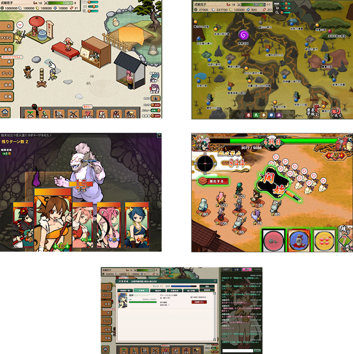 自分だけの庭に住み着いた式姫を育成し、式姫たちとともに各地に住み着く物怪を討伐していくことを目的としたゲームです。式姫たちを育て、自分だけのカードデッキを構築し、物怪たちと戦うカードバトルの要素と、様々な置物や建物を組み合わせて独自の庭を作る箱庭シミュレーションの要素を合わせもった点が魅力のゲームとなっております。