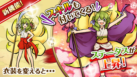 衣装交換では、式姫の衣装が変わるだけでなく、それに伴いステータスも上昇します。