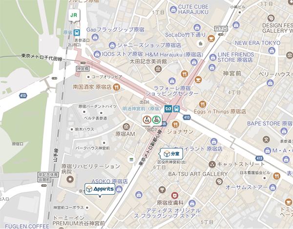 | アクセス | JR山手線 原宿駅 表参道口より徒歩4分 東京メトロ副都心線、東京メトロ千代田線 明治神宮前(原宿)駅 7番出口より徒歩1分 |