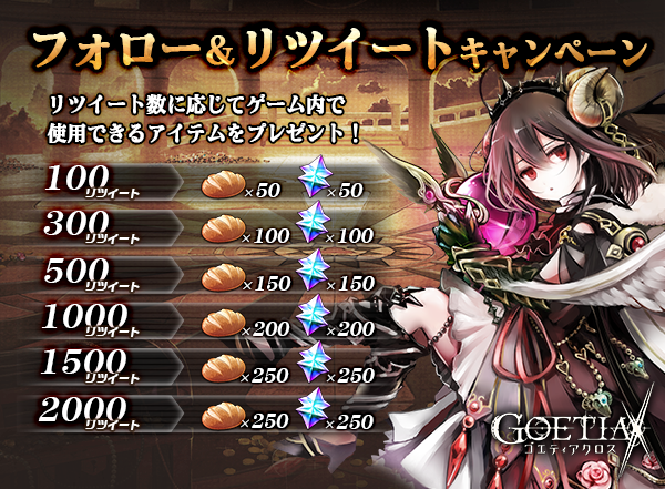 期間中にゴエティアクロス公式アカウント(@goetiax_staff)がつぶやく対象ツイートの