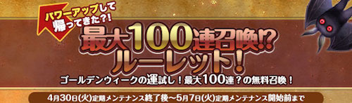 2019年4月30日(火)定期メンテナンス終了後〜2019年5月7日(火)定期メンテナンス開始前までの期間中、ルーレット召喚がパワーアップして再登場!