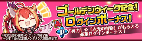 2019年5月14日(火)定期メンテナンス開始前までの期間中、ゴールデンウィークを記念した特別ログインボーナスが実施されます!
