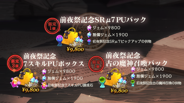 ■前夜祭記念7スキルPUボックス:9800円(期間中3度のみ購入可能)