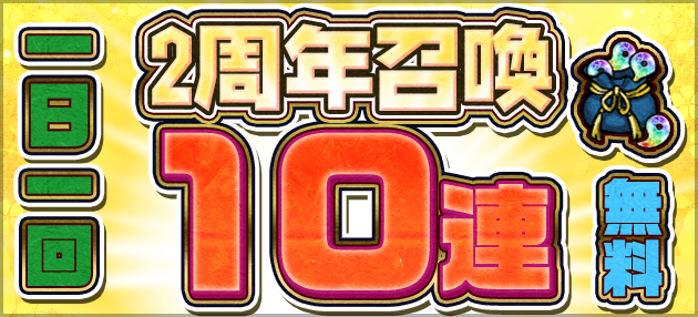 期間中、1日1回"10回召喚"を無料で行うことが出来る2周年召喚が登場します。