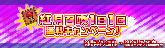 2019年12月24日(火)定期メンテナンス開始前までの期間中、紅月召喚を1日1回無料で行うことができます。