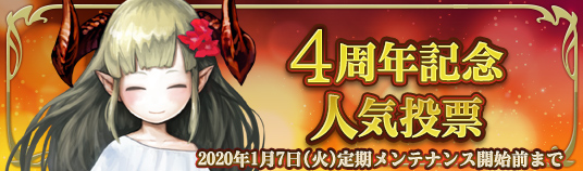 2020年1月7日(火)定期メンテナンス開始前までの期間中、お気に入りのキャラクターに投票を行うことができる人気投票が開催されます。
