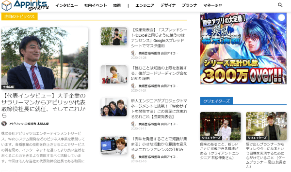 アピリッツ、オウンドメディア「Appirits spirits」公開スタート!