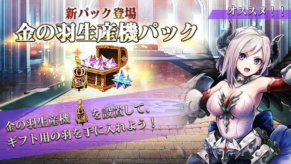 1.5周年を記念して、ジェムパック「金の羽生産機パック」を販売いたします。