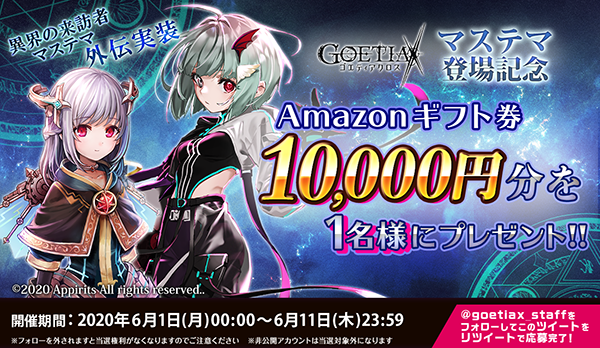 期間中にゴエティアクロス公式アカウント(@goetiax_staff)をフォローし、対象のツイートをリツイートした方から