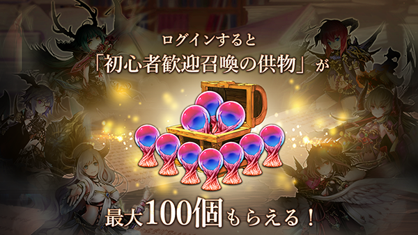 「初心者歓迎召喚の供物」が1日10個、最大100個もらえる特別ログインボーナスを開催いたします!
