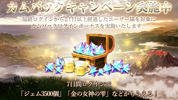 コラボキャンペーンを記念して、カムバックログインボーナスを開催いたします!