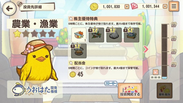 『ひよこ社長のまちづくり』では、ピヨタウンにある様々な企業に投資を行うことで、その投資が街の発展に寄与することを体感することができます。投資先の企業から「配当・優待」を受け取ったり、投資先への「経営方針」に関する指示を出したり等、投資をすることの意義を、ゲームを通じて楽しみながら疑似体験できます。