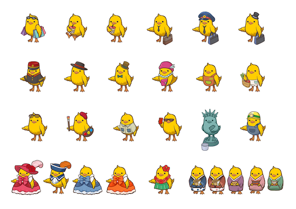 牧場、レストラン、鉄工所。まちにはたくさんの働く場所があり、いろいろな職業のぴよたちが生活しています。あなたはどんなぴよたちに出会うのでしょうか?