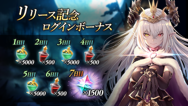 リリースを記念して、大量のマナとスタミナ、そして最終日にジェム1500個が手に入るログインボーナスを開催いたします!