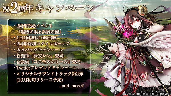 「2周年キャンペーン」では、記念イベント「追懐に眠る試練の鍵」を開催するほか、