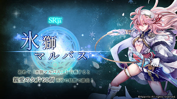 「氷獅マルバス」を確定入手できる召喚を行えます。