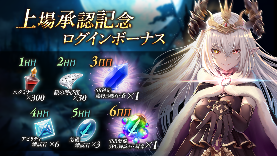 3日目にはSR魔物を確定で召喚できる「SR確定魔物召喚石・蒼」が、