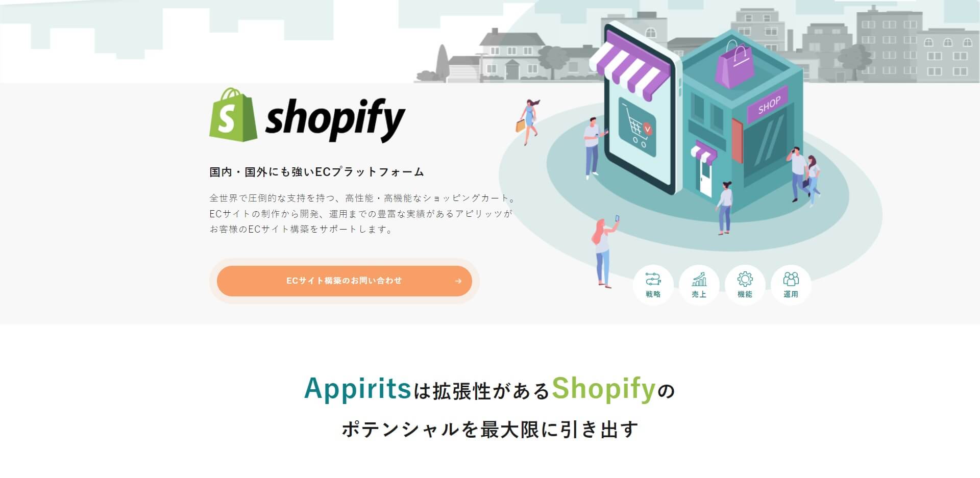 上記のようなご要望に対応すべく、アピリッツはEC構築プラットフォームである「Shopify」のコストパフォーマンスの高さと拡張性に着目し、「Shopify」を活用したEC構築支援を開始することといたしました。