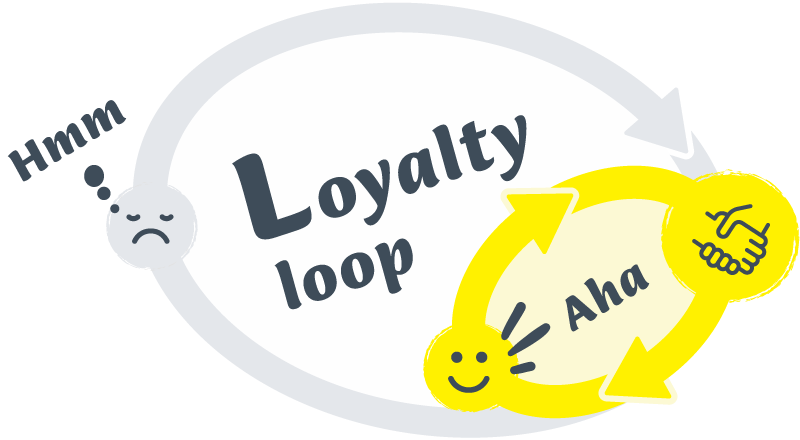 ロイヤリティループを生み出すためのトリガーとなる「アハ・モーメント」を社員みんなで楽しみながら創出していきます。