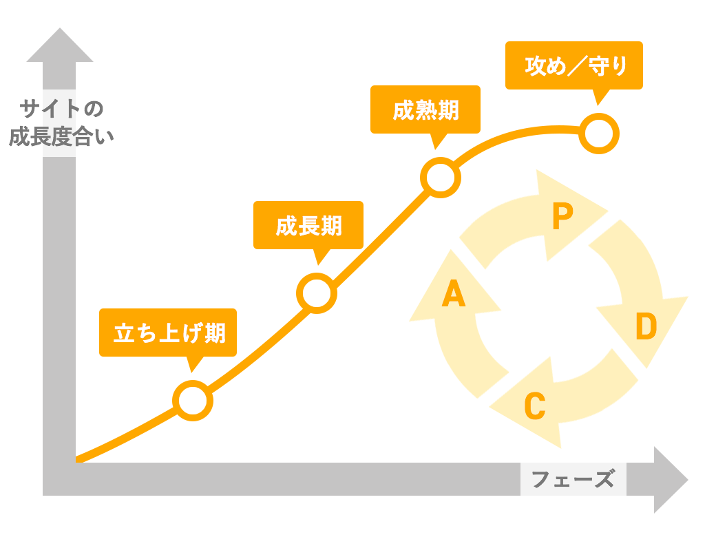 サイトがどのフェーズにあるかに応じて、効果的な施策はまったく異なります。
