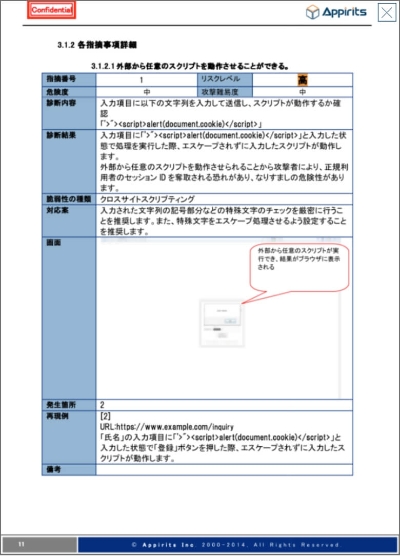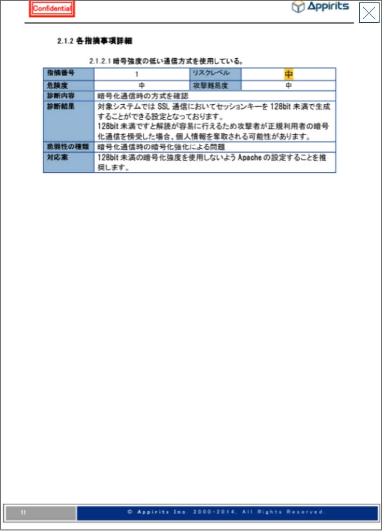 ※再度同じ診断を実施する訳ではないため、新たな脆弱性が検出される事はありません。