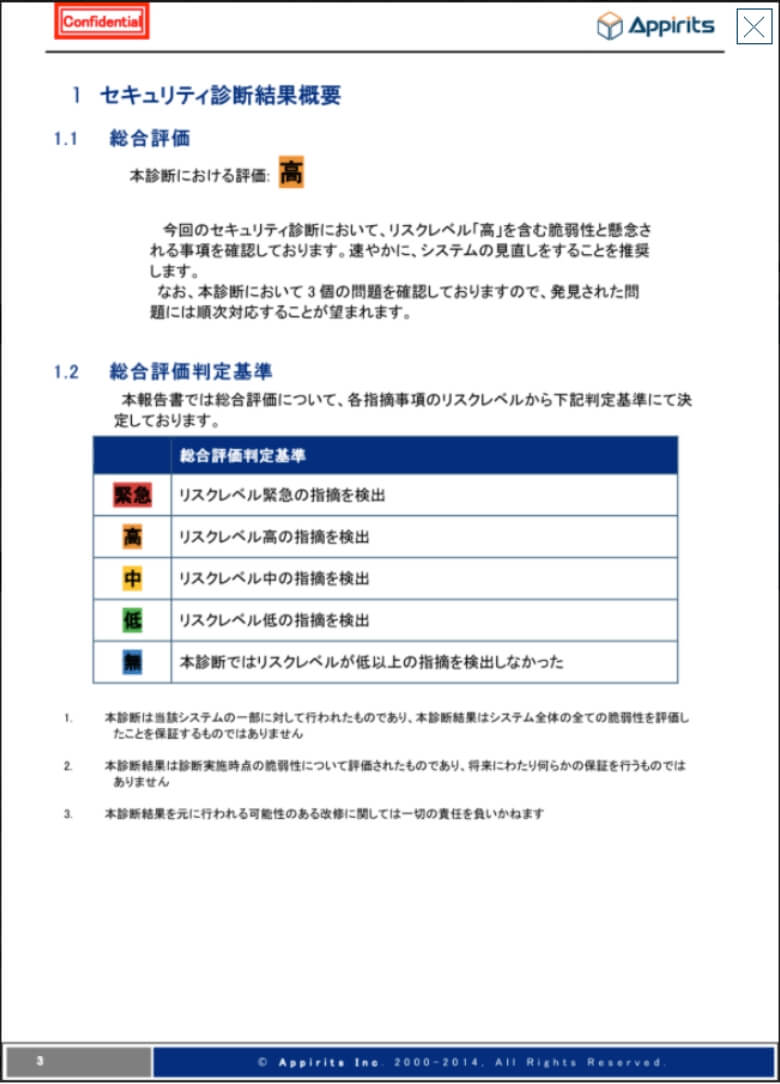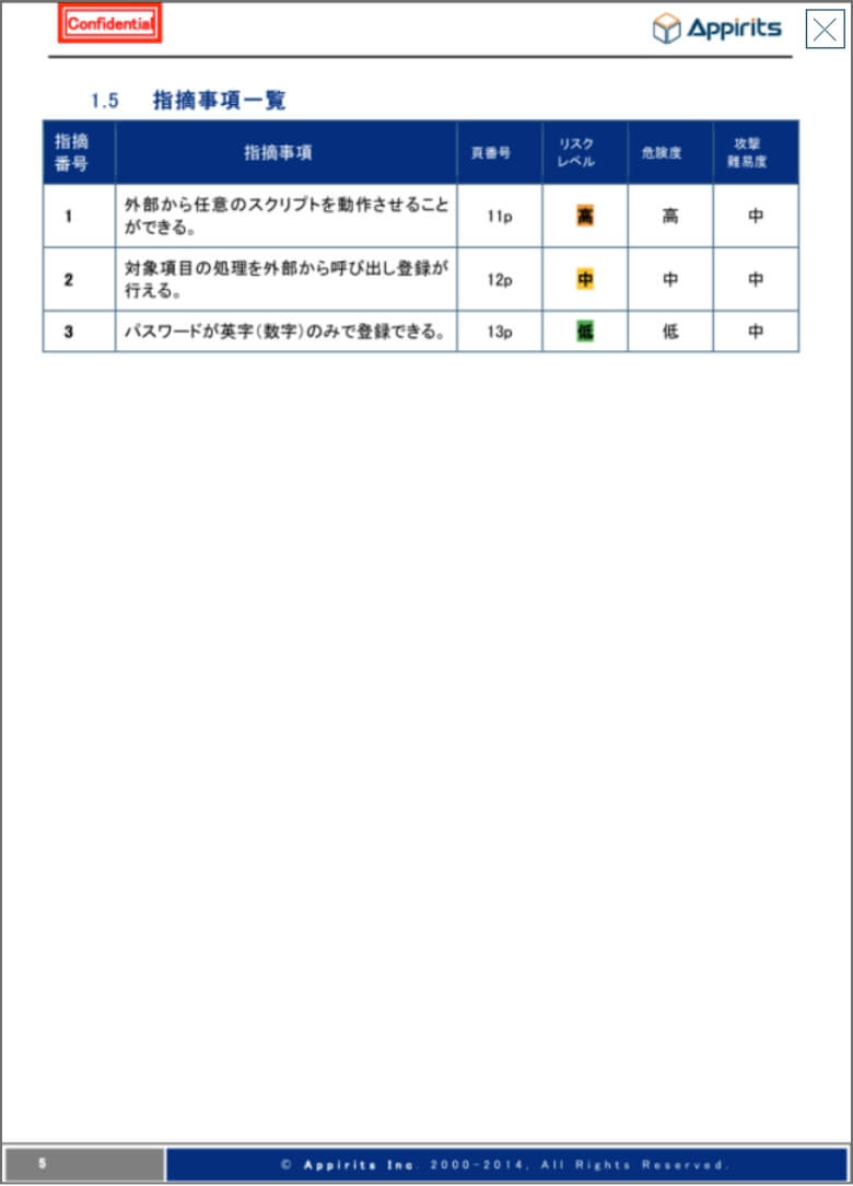 アピリッツのセキュリティ診断サービスではすべての診断に再診断がセットになっています。診断して終わりではなく、診断結果で出た内容を修正を行っていただいた後、再度診断を行わせて頂きます。
