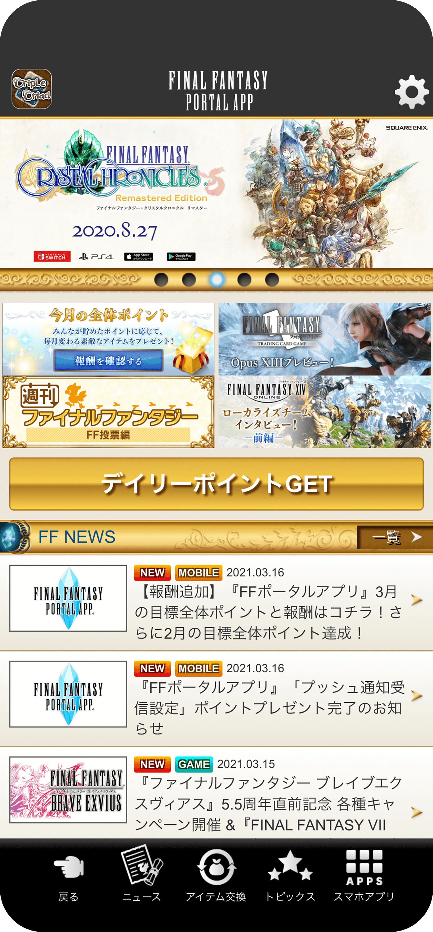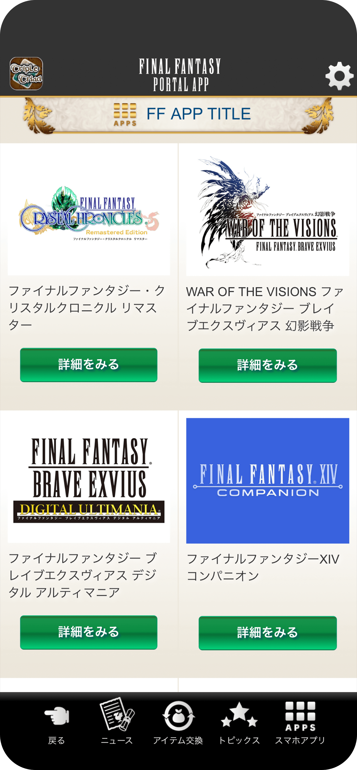スマートフォン用『ファイナルファンタジー』総合情報アプリ。